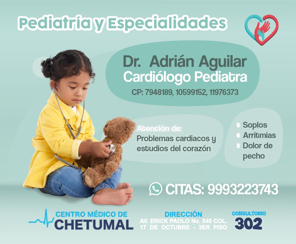 Dr. Carlos Adrián Aguilar Cardiólogo Pediatra en Chetumal