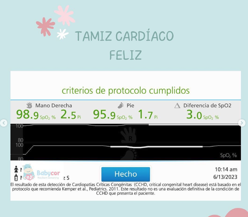 Entre los servicios que ofrece, destaca el tamiz neonatal, un procedimiento realizado en las primeras 24 a 72 horas después del nacimiento para detectar siete cardiopatías congénitas críticas. Este tamiz se realiza con tecnología patentada que garantiza resultados precisos y entrega de resultados inmediata. El protocolo sigue los estándares establecidos por la Academia Americana de Pediatría y la American Heart Association, asegurando la más alta calidad en el diagnóstico y cuidado temprano.