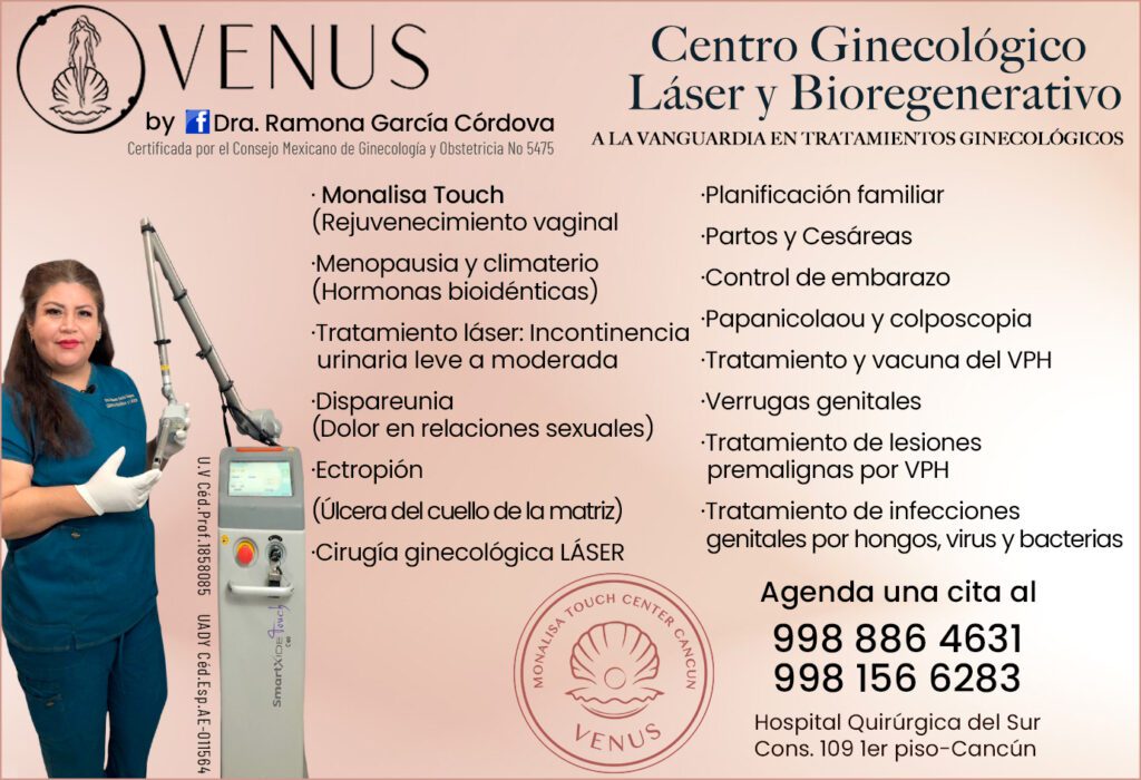 • Con más de 25 años de experiencia en Ginecología y Obstetricia en la ciudad de Cancún