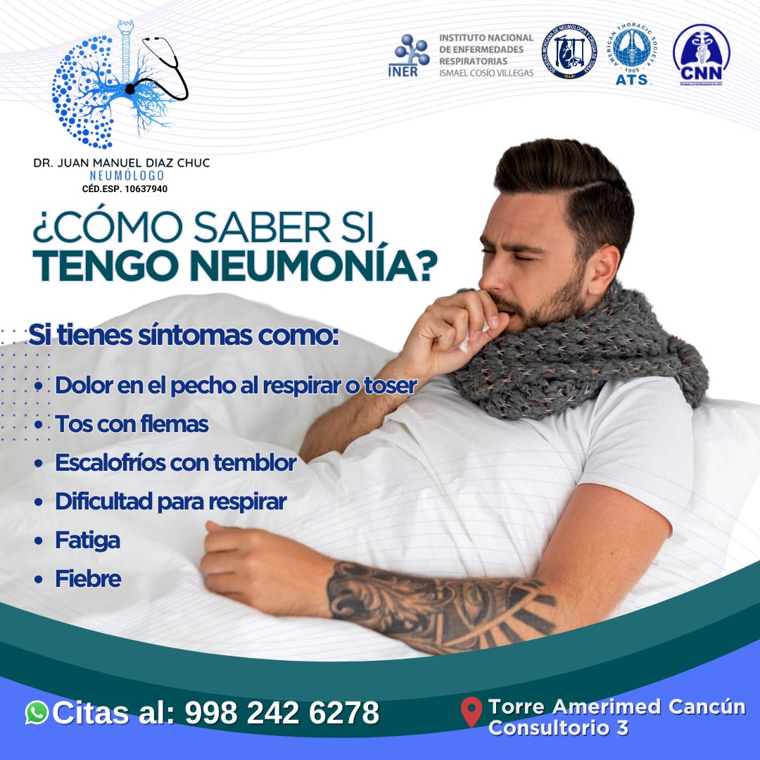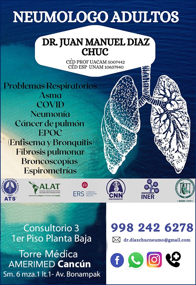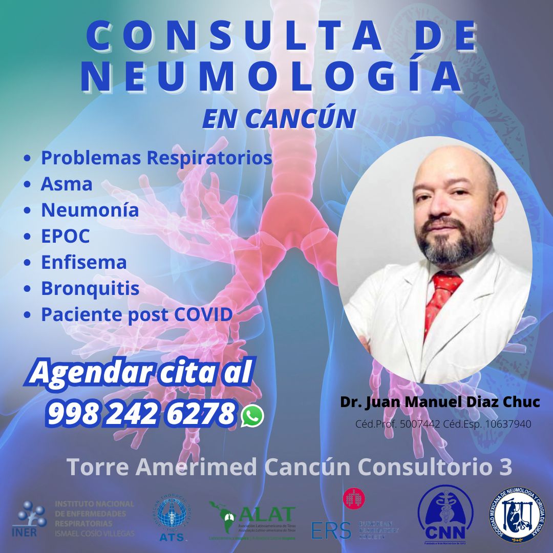 En mi consultorio de Neumología en Cancún, ofrezco una atención especializada para una amplia gama de problemas respiratorios. Soy el Dr. Juan Manuel Díaz Chuc, un neumólogo con una sólida formación y experiencia en el campo de la salud pulmonar.