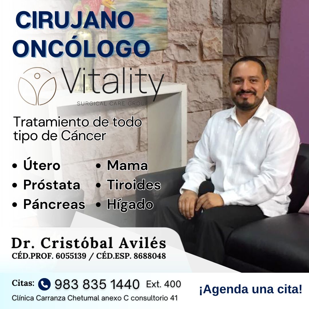 Hola Soy el Dr. Cristóbal Avilés Díaz es especialista en Oncología y brindo consulta de oncología en Chetumal